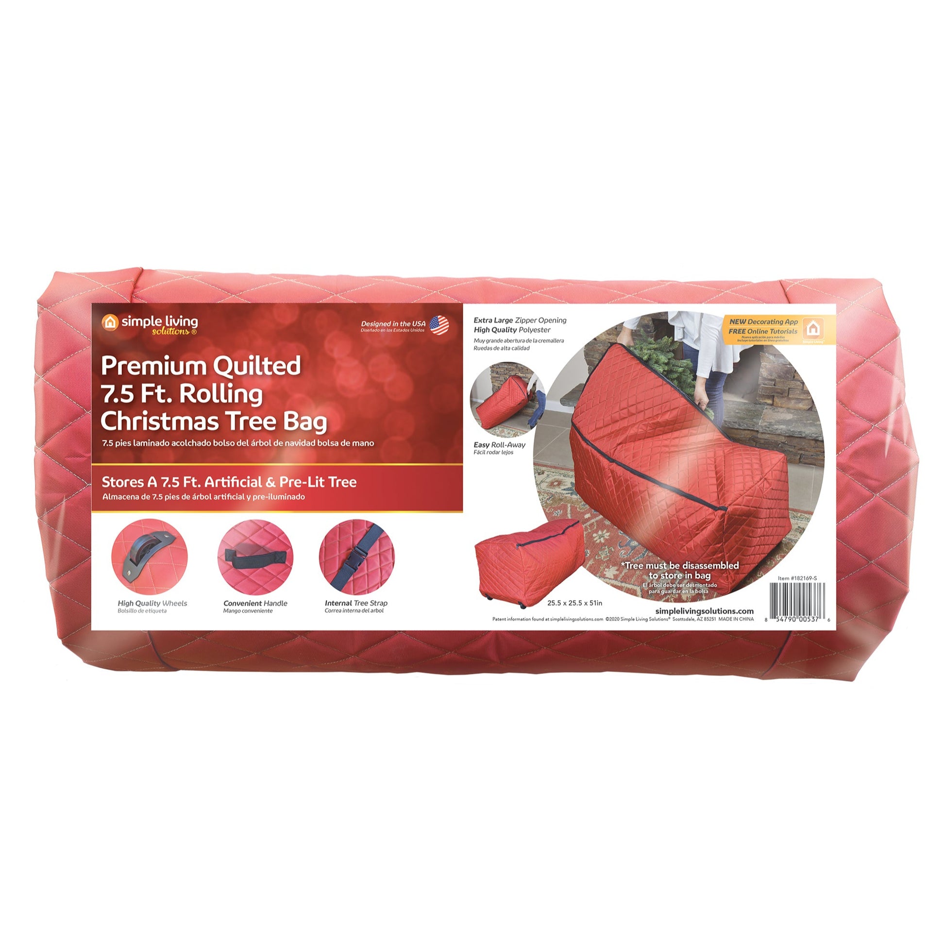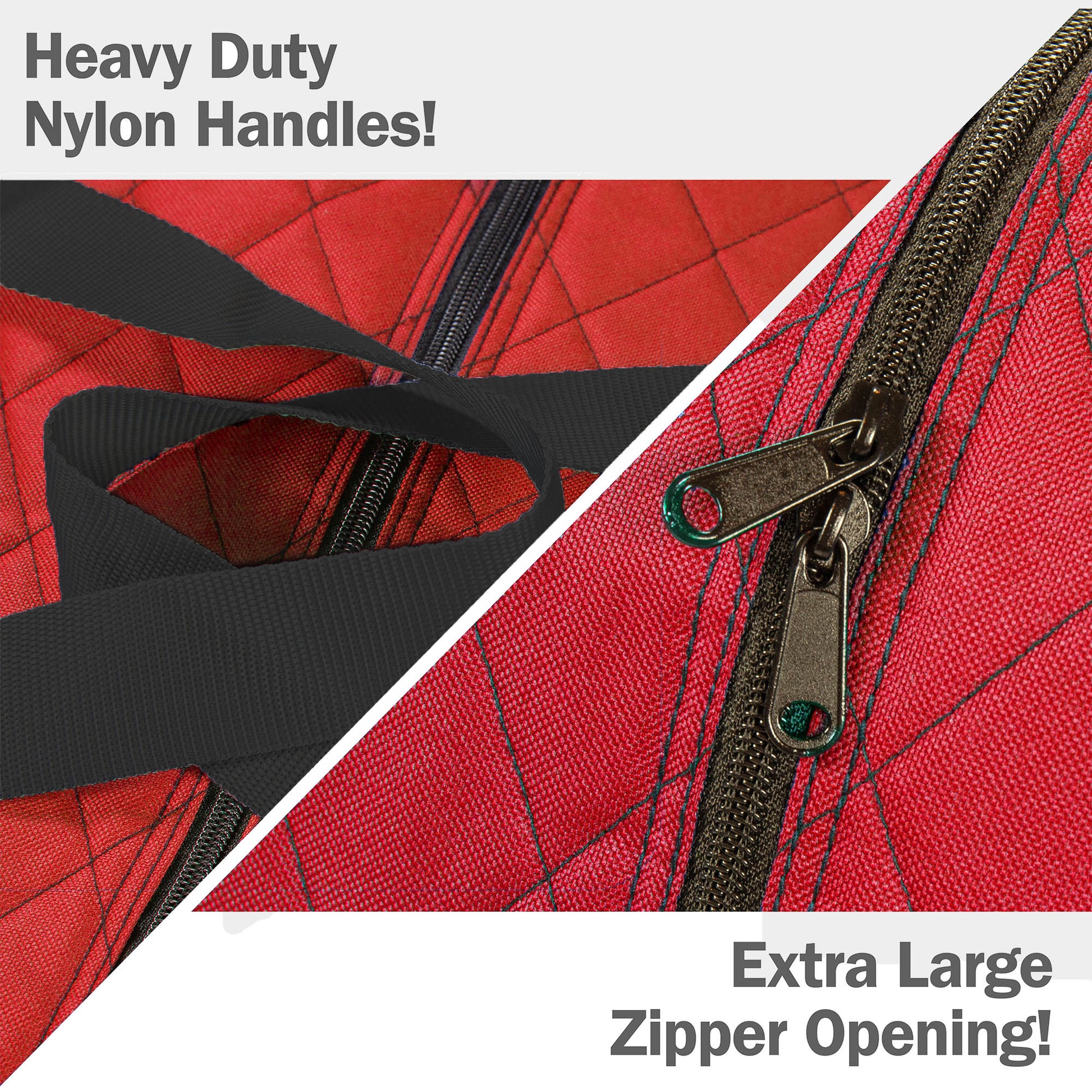Our Premium 7.5ft Quilted Rolling Tree Bag is perfect for storing up to a 7.5ft artificial or pre-lit tree. Made from a high-quality polyester and quilted for extra protection, this Quilted Rolling Tree Bag includes heavy duty zippers to protect from dust and debris, high-quality, durable wheels for easy transportation, a convenient handle for easy roll away, and an extra-large zipper opening perfect for easy and simple clean up and storage of your tree.
